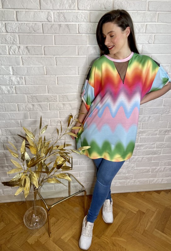 Cieniowana bluzka oversize 136 cm z zielenią Cieniowana bluzka oversize 136 cm z zielenią