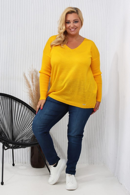 Lekki sweter oversize w szpic żółty Lekki sweter oversize w szpic żółty