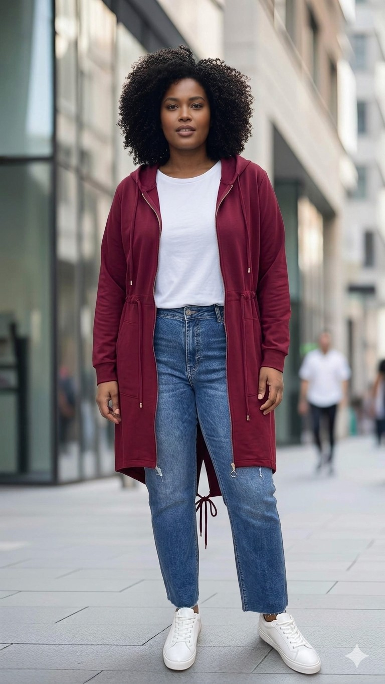Bluza parka ze ściągaczem w pasie. Można dowolnie regulować.