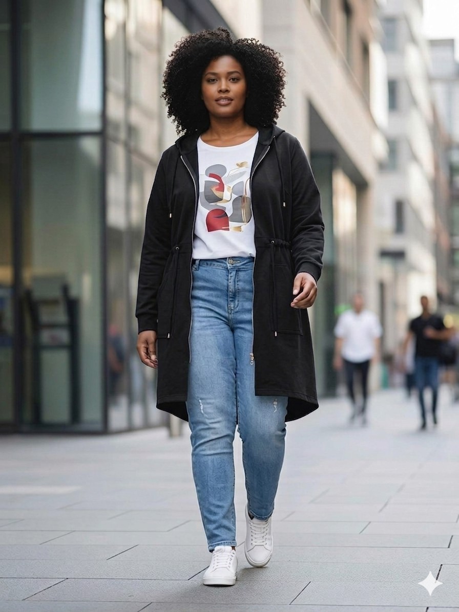 Bluza parka ze ściągaczem w pasie. Można dowolnie regulować.