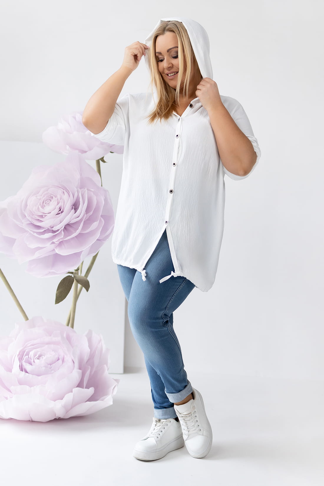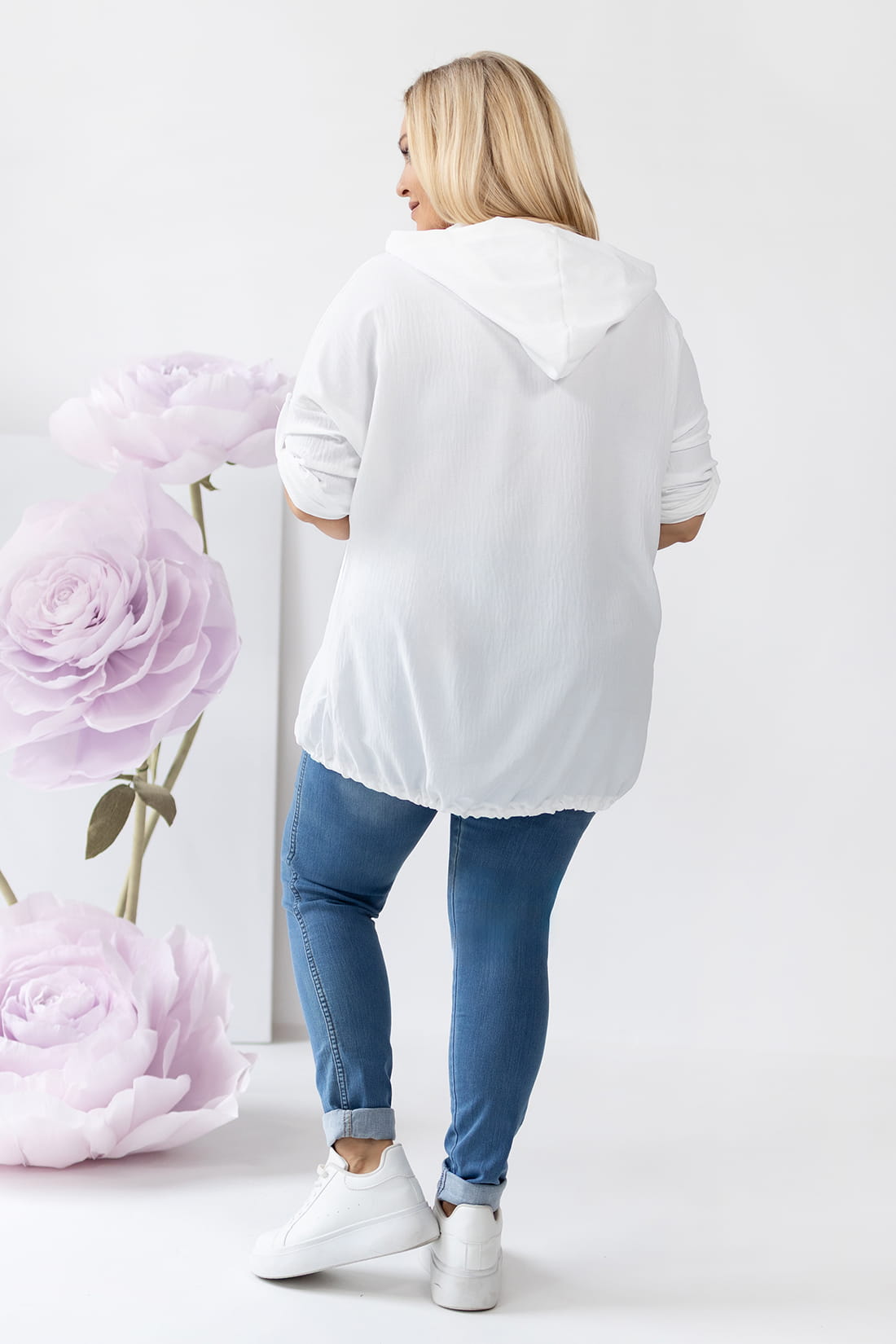 Bluza narzutka z kapturem biała