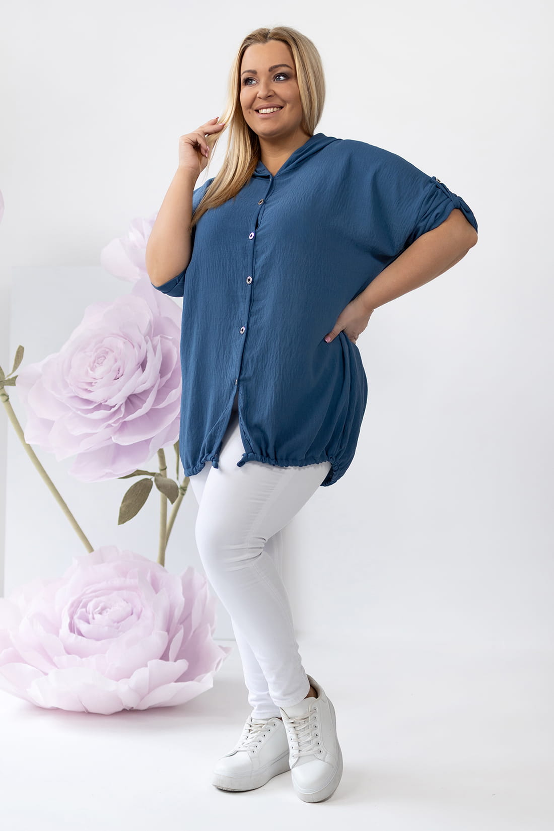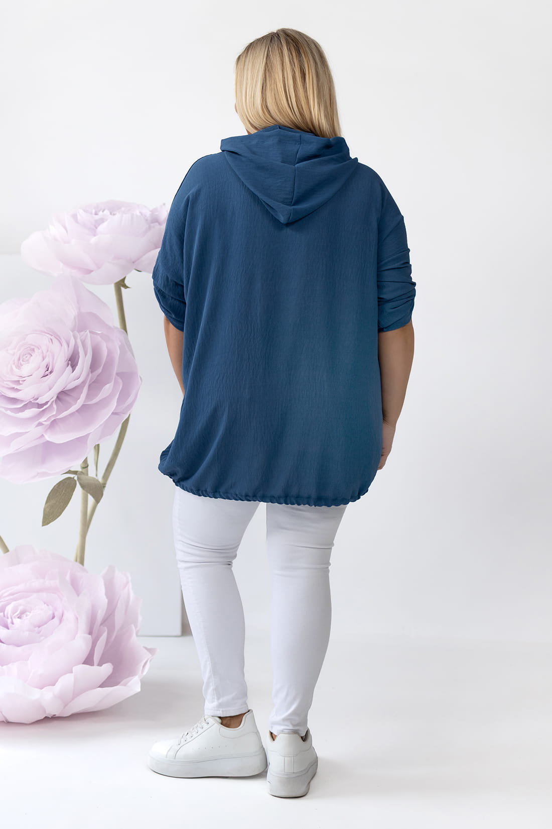 Modelka na zdjęciu ma 120 cm w biuście, 107 cm w pasie i 120 cm w biodrach.