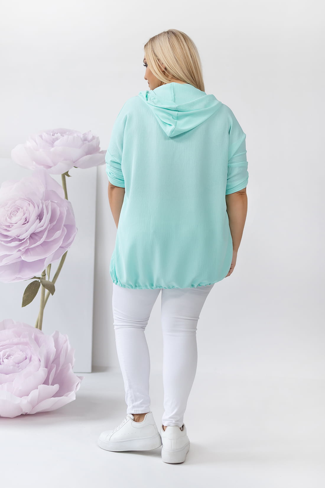 Modelka na zdjęciu ma 120 cm w biuście, 107 cm w pasie i 120 cm w biodrach.