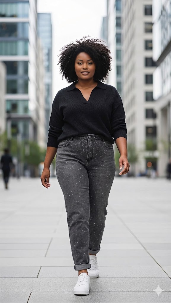 To jeansy damskie Plus Size, które łączą elegancję, modny detal i wygodę noszenia, idealne zarówno na spotkania w ciągu dnia, jak i na wieczorne wyjścia. Doskonały wybór dla kobiet, które chcą wyróżnić się stylem w pełniejszych rozmiarach.