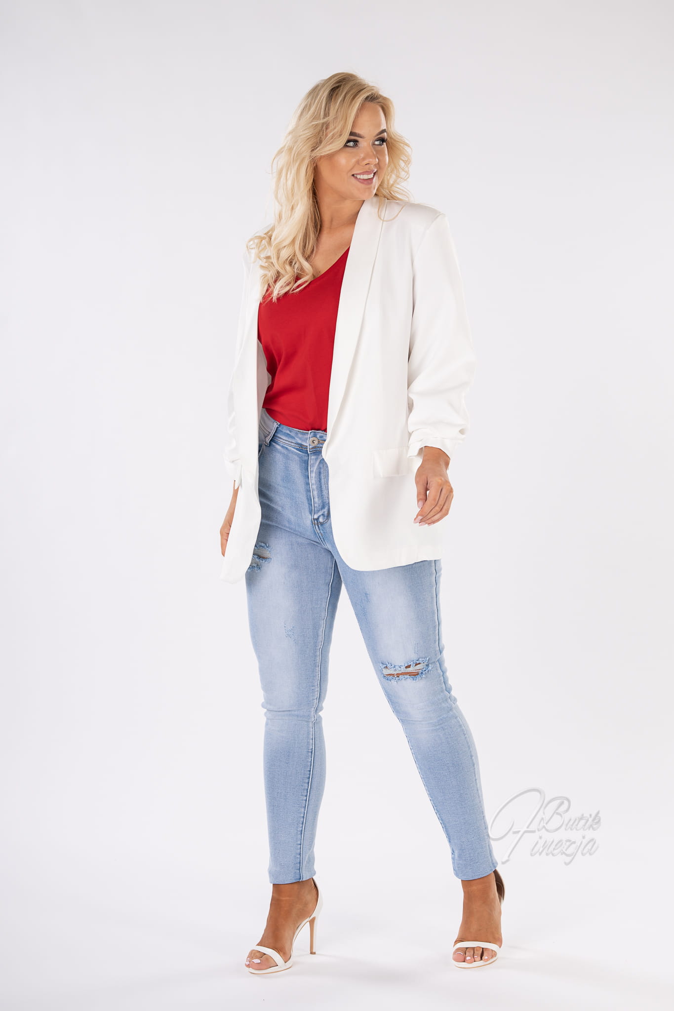 Elegancka marynarka z marszczonym rękawem. Posiada podszewkę. Wszyte poduszki. Bez zapięcia. Idealna na każdą okazję.