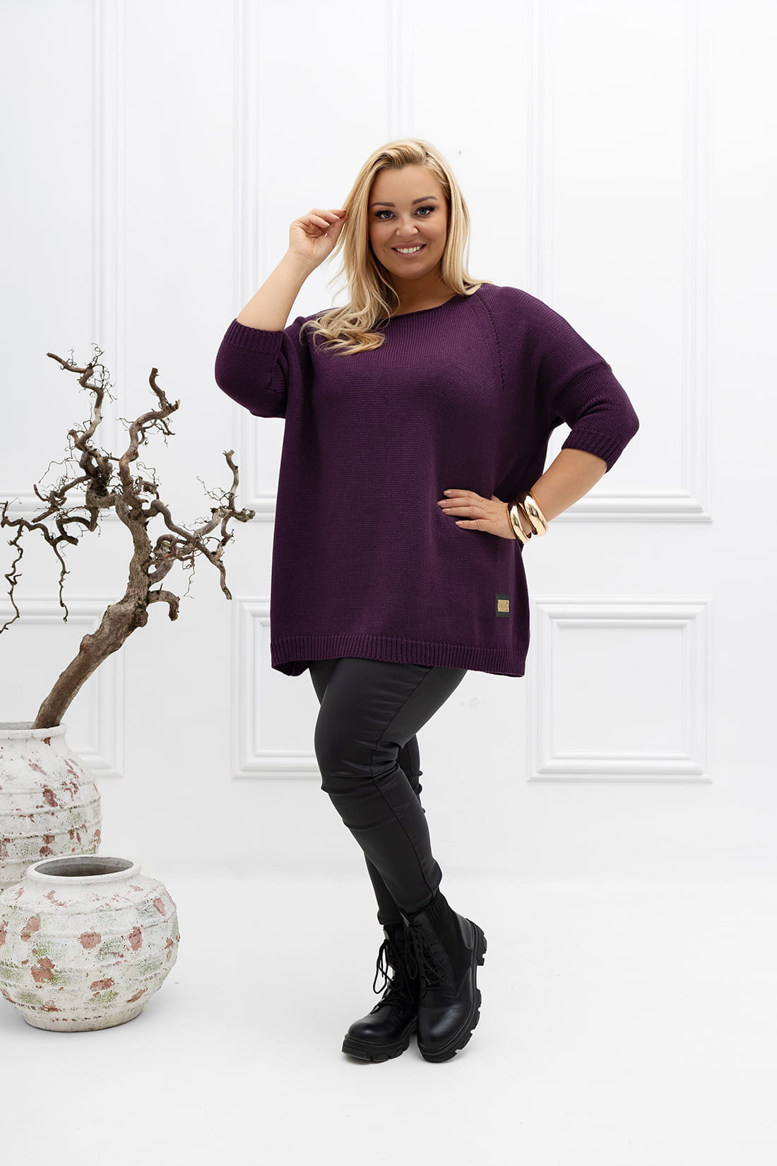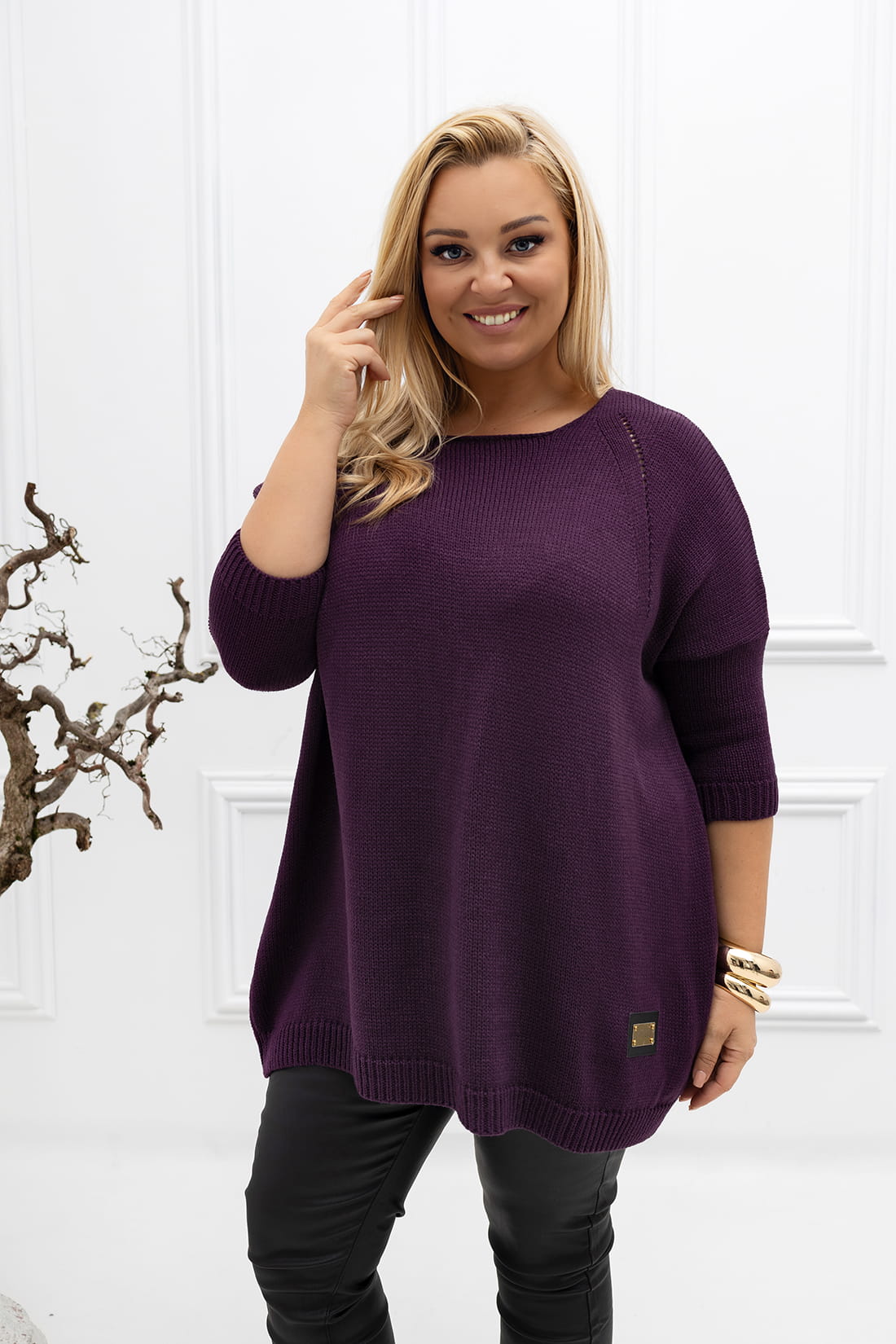 Sweter oversize z blaszką śliwkowy